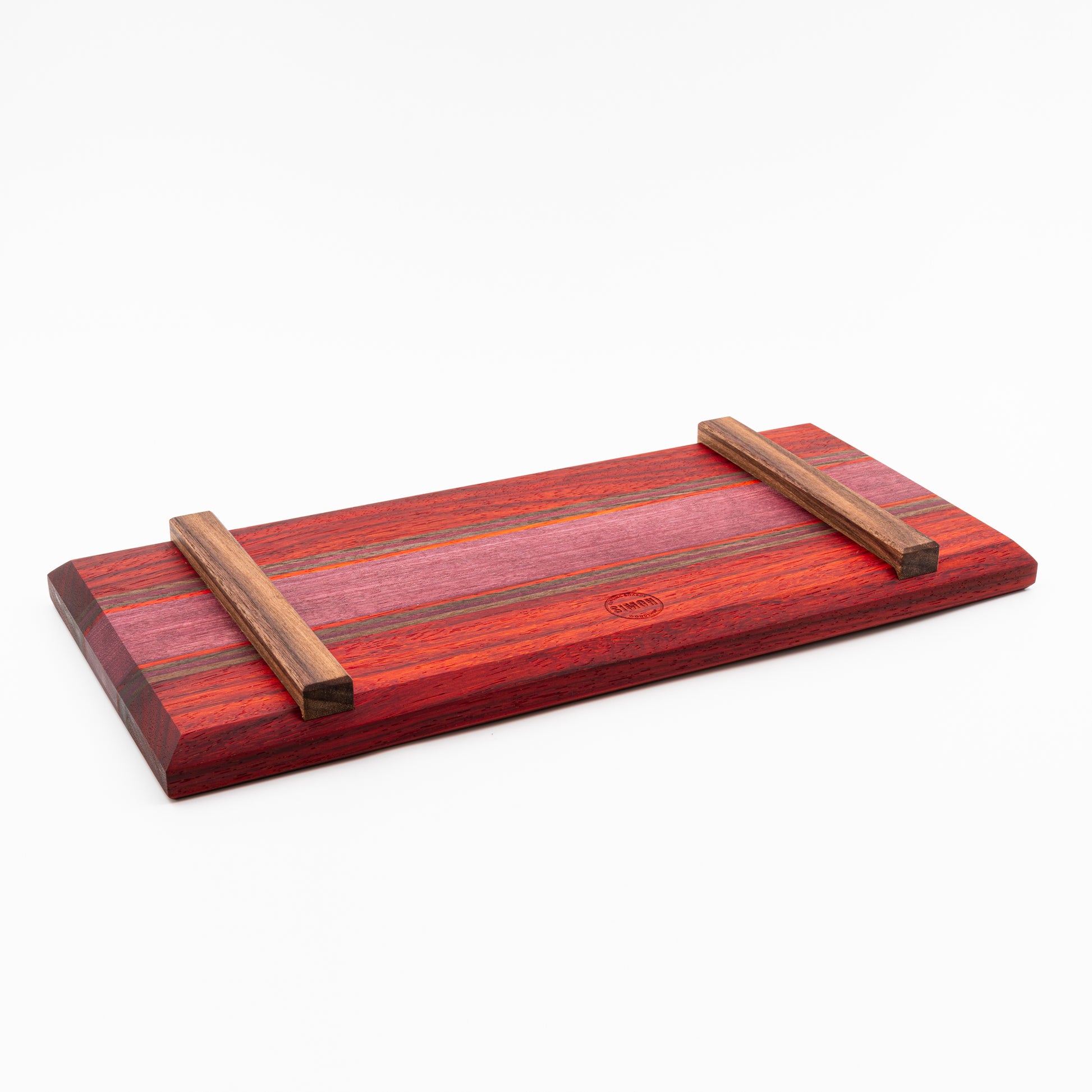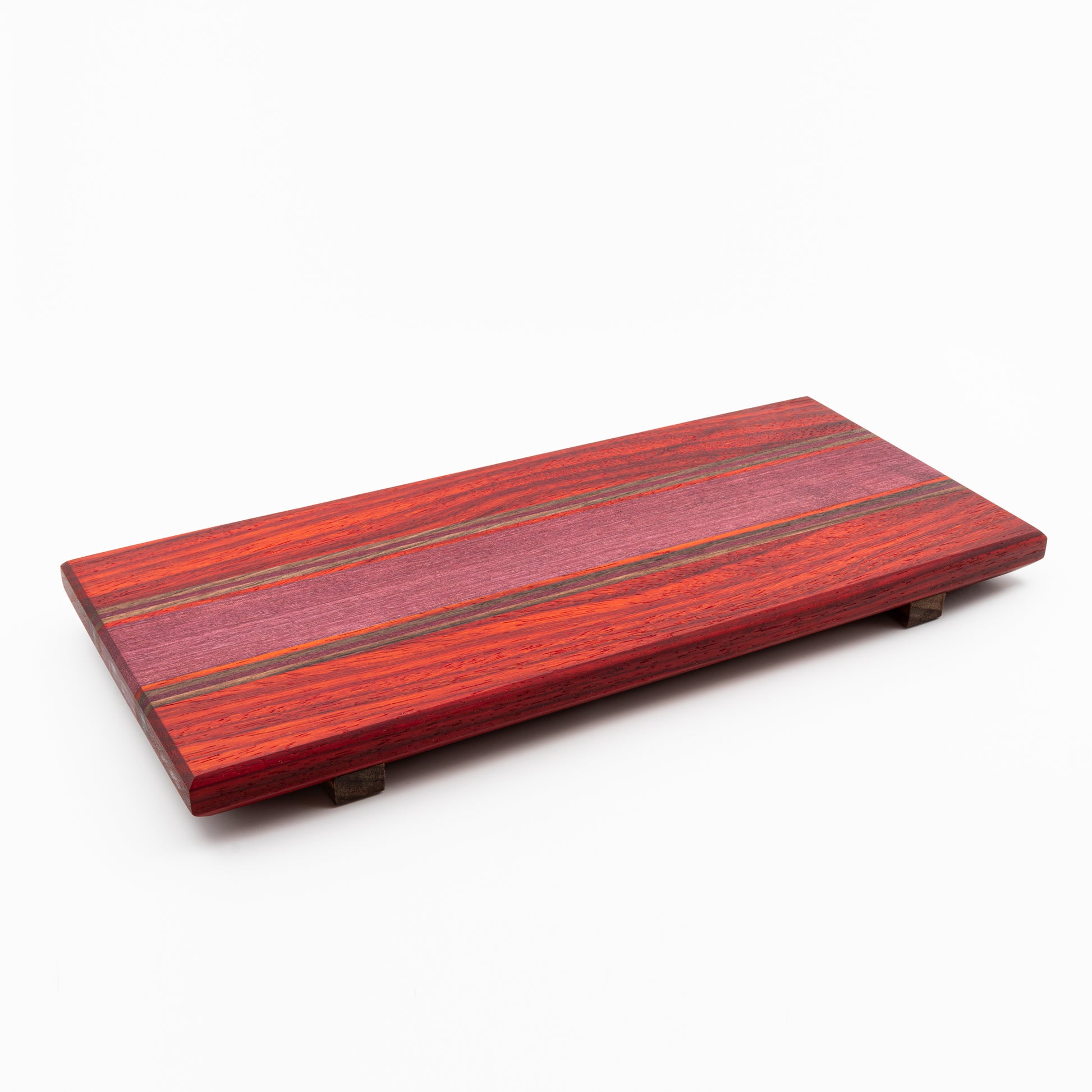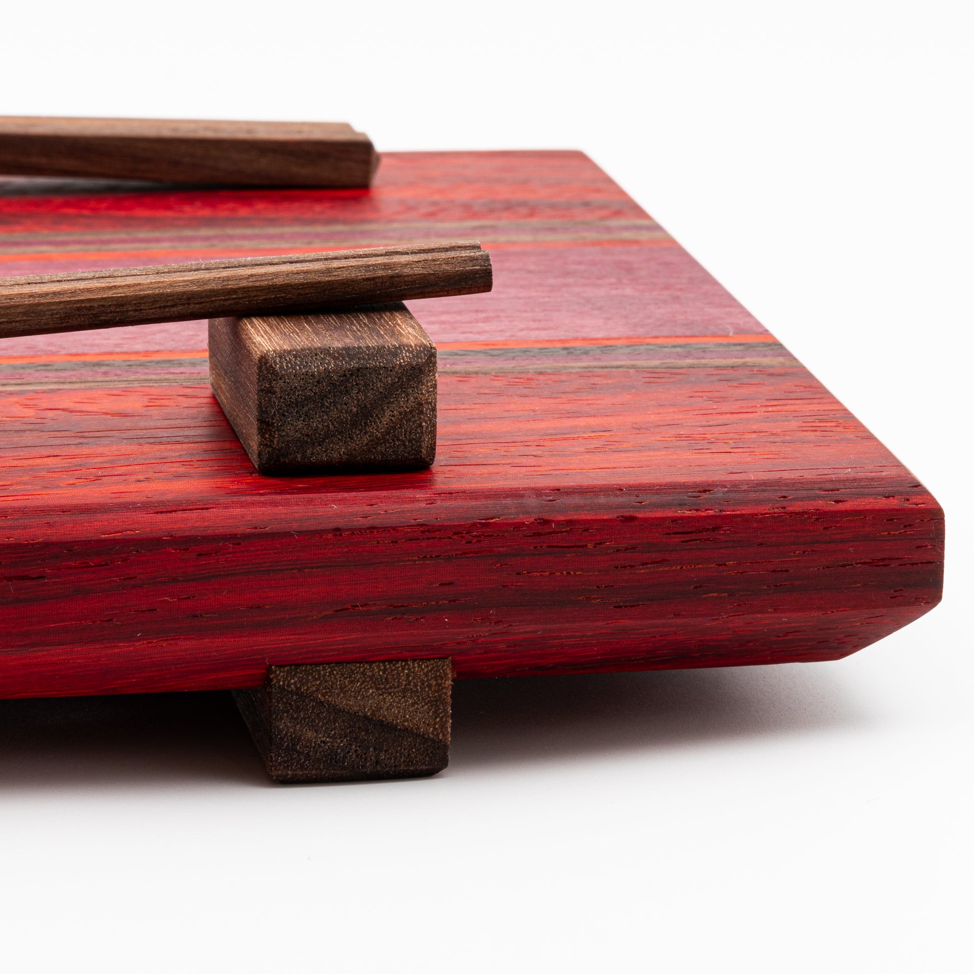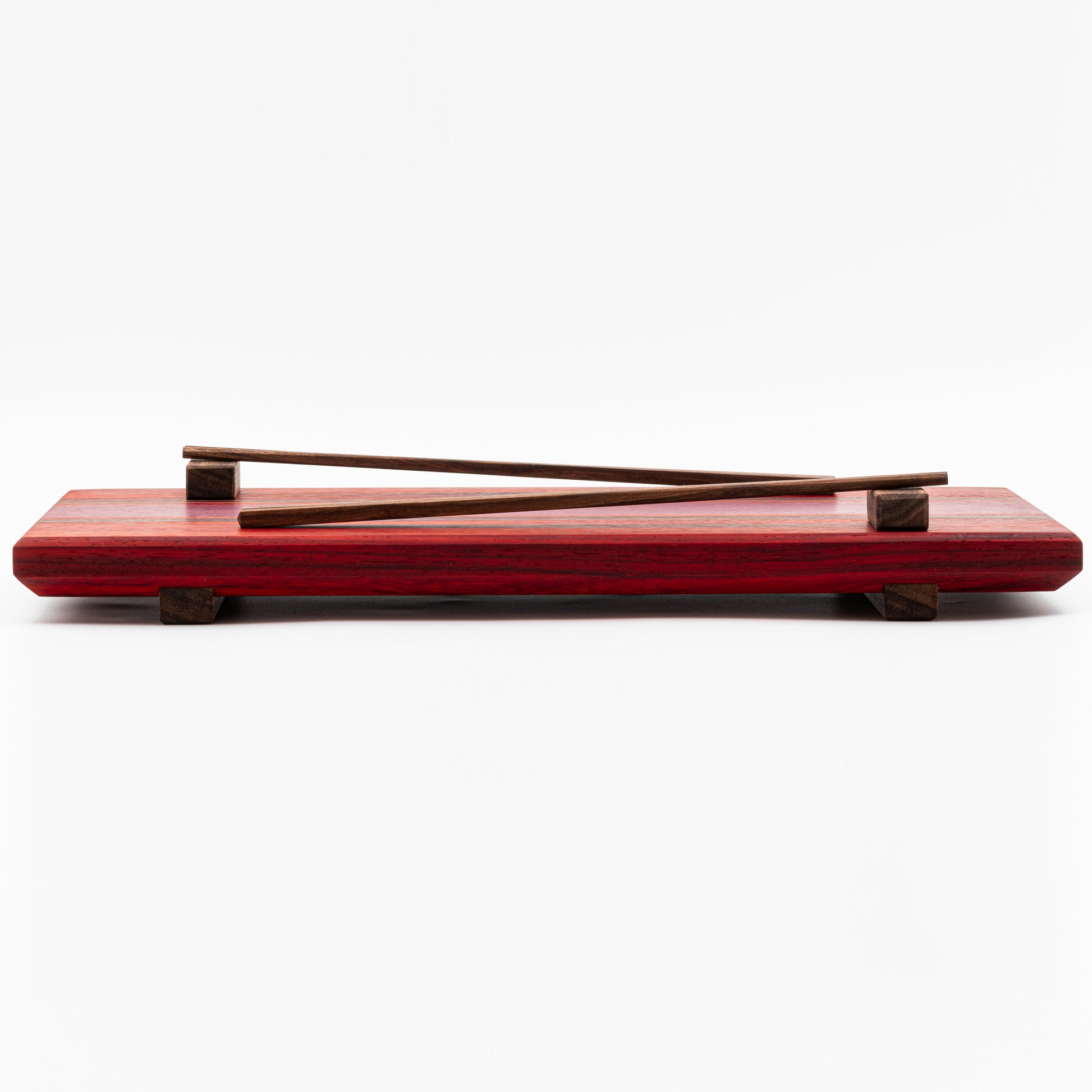 Introducing my japanese style sushi serving board crafted from premium Padouk, Purpleheart and American walnut. Dimensions: 40x17x3.5cm. Complete with two sets of chopsticks. It's the perfect centerpiece for your sushi nights. 🍣✨ #sushiboard #handcrafted #sushilovers